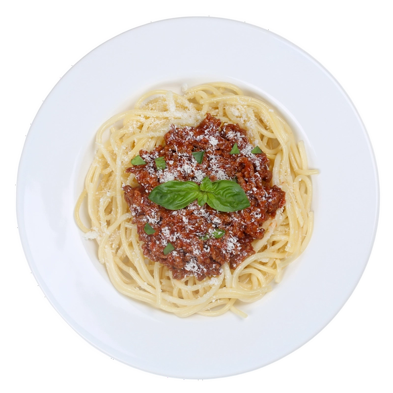 Overheerlijke zelfgemaakte bolognesesaus met ui, gehakt, kaas, pasta is (licht pittig) kan pittiger aub aangeven